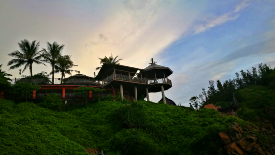 上岛后,办理好了酒店入住,同事们拿了房卡,酒店在美丽的山坡上,需坐电瓶车上去。放好了行李,换好了拖鞋,跑到海滩上洒欢去。