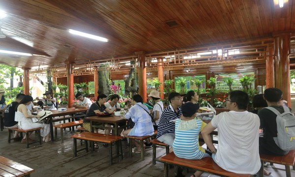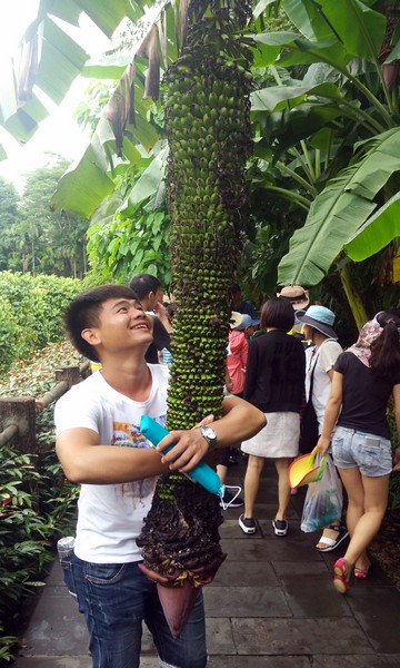 受台风影响,我们不得不在26日中午比预计方案提前三小时登船出岛向兴隆驶去。到达目的地后,我们先是参观了兴隆植物园。在讲解员的讲解下,我们认知了近千种稀有植物品种,参观了“高级稀有香料——香荚兰”、“世界三大饮料之首——咖啡”、“天堂的种子——胡椒”、“巧克力之母——可可”的试验基示范基地,品尝了园主自主研发的系列产品,让我们回味无穷。